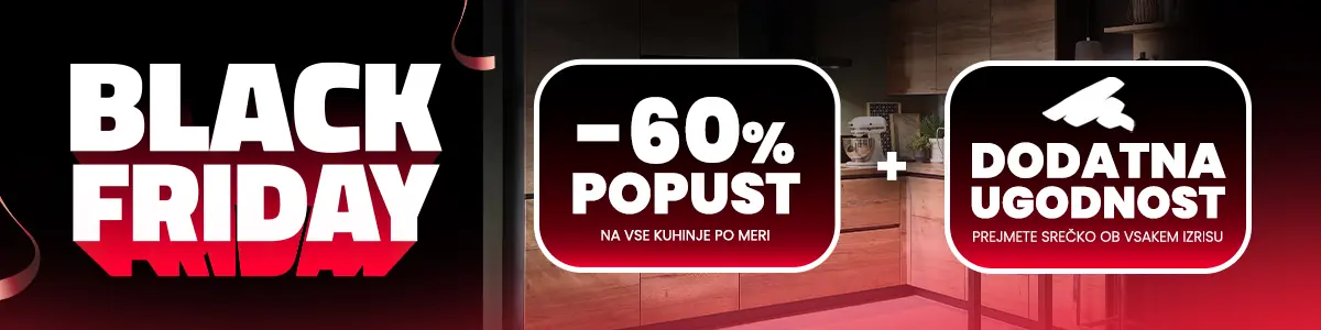 Pogoji akcije »60% znižanje na vse kuhinje in pohištvo po meri + brezplačne storitve.«