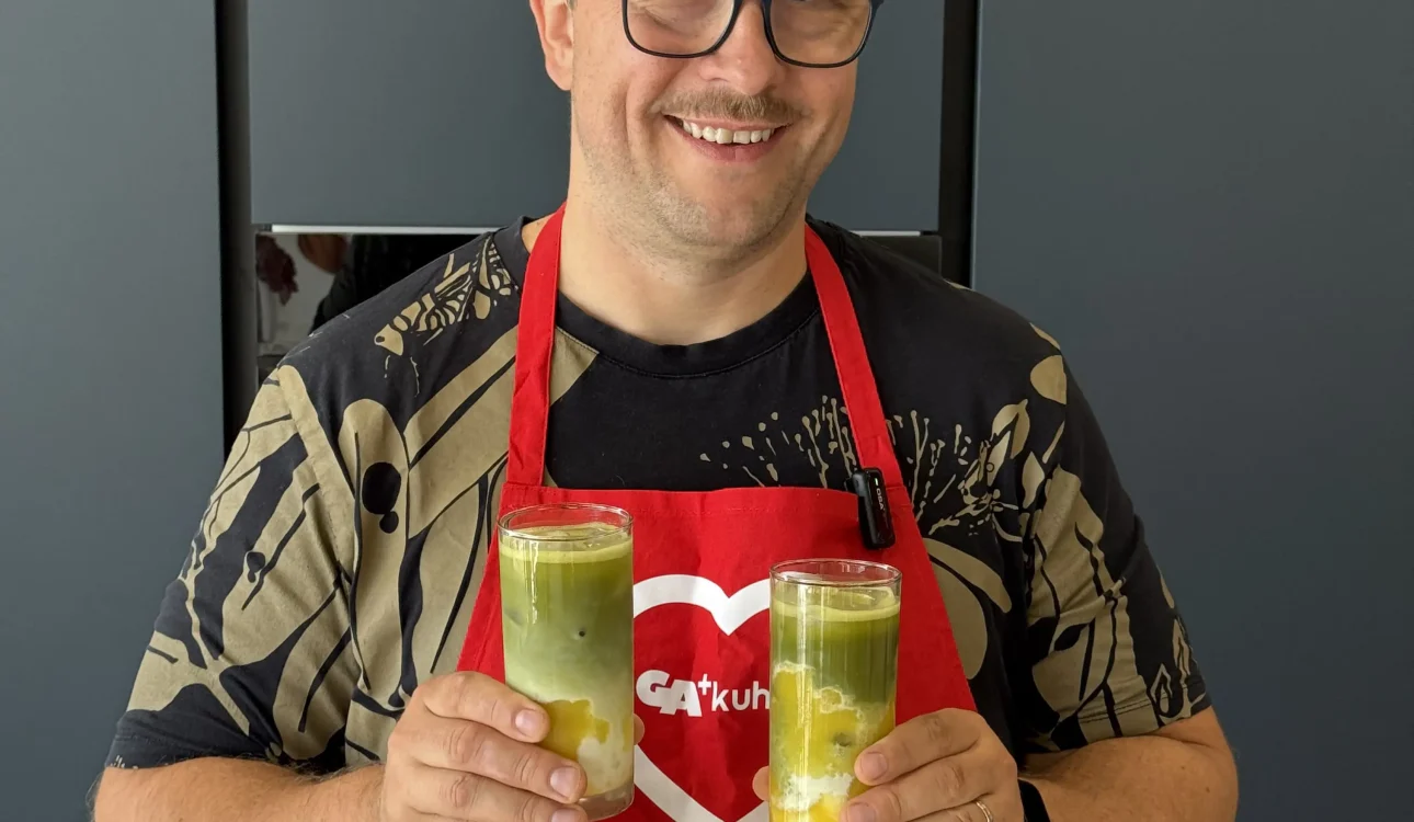 Če želiš bolj “smoothie vibe”, lahko mango zmiksaš skupaj z mlekom v kremasto osnovo in nato dodaš matcha plast na vrh.