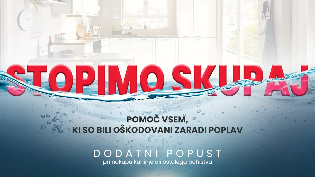 Zato želimo pomagati na vaši poti k obnovi. Odločili smo se, da vsem, ki ste bili oškodovani v poplavah ponudimo dodatni popust pri nakupu kuhinje ali ostalega pohištva.